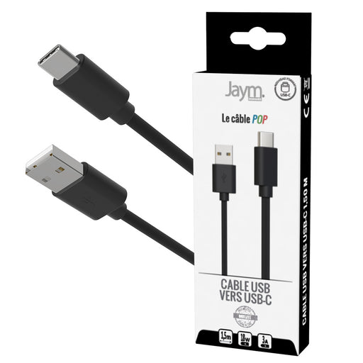 CABLE USB VERS TYPE-C 1.5M 3A NOIR